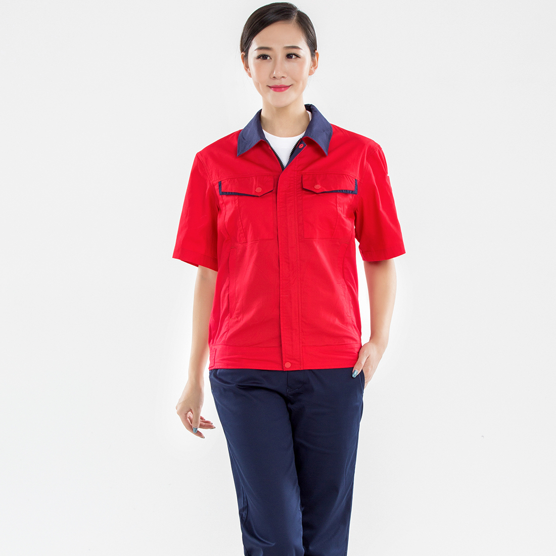 大红拼藏青夏季工作服AD13-2