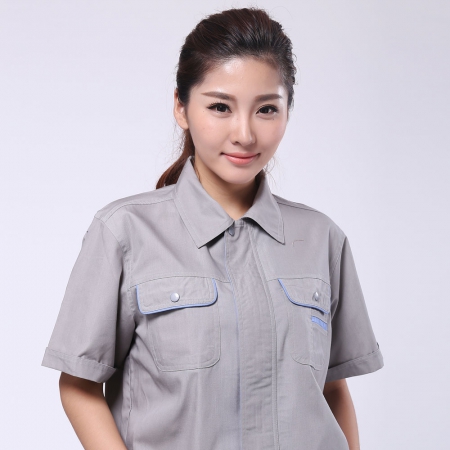 苏州鹰诺服装:清灰拼银灰全棉夏季工作服AD06-2