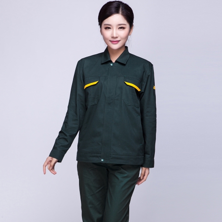 苏州鹰诺服装:墨绿拼黄色夏季工作服AD08-3