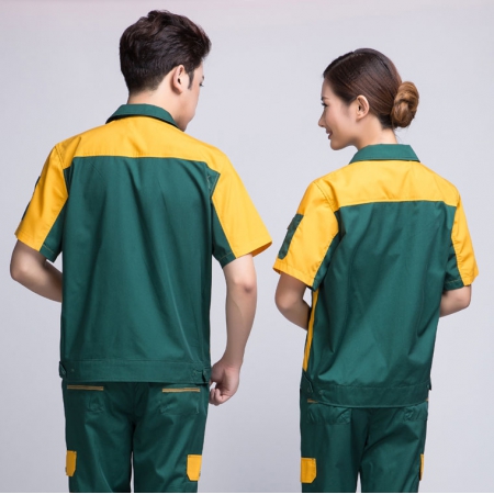 墨绿拼黄色夏季工作服AD08-3