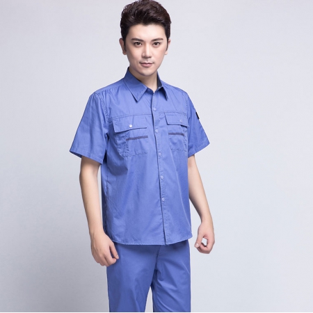 苏州鹰诺服装:湖蓝拼浅灰工作服AC20-2