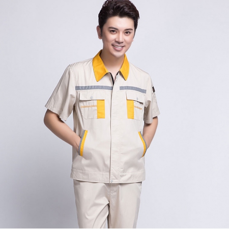 苏州鹰诺服装:米色拼黄色秋季工作服AC09-1
