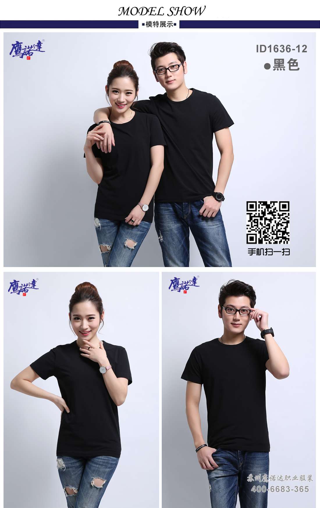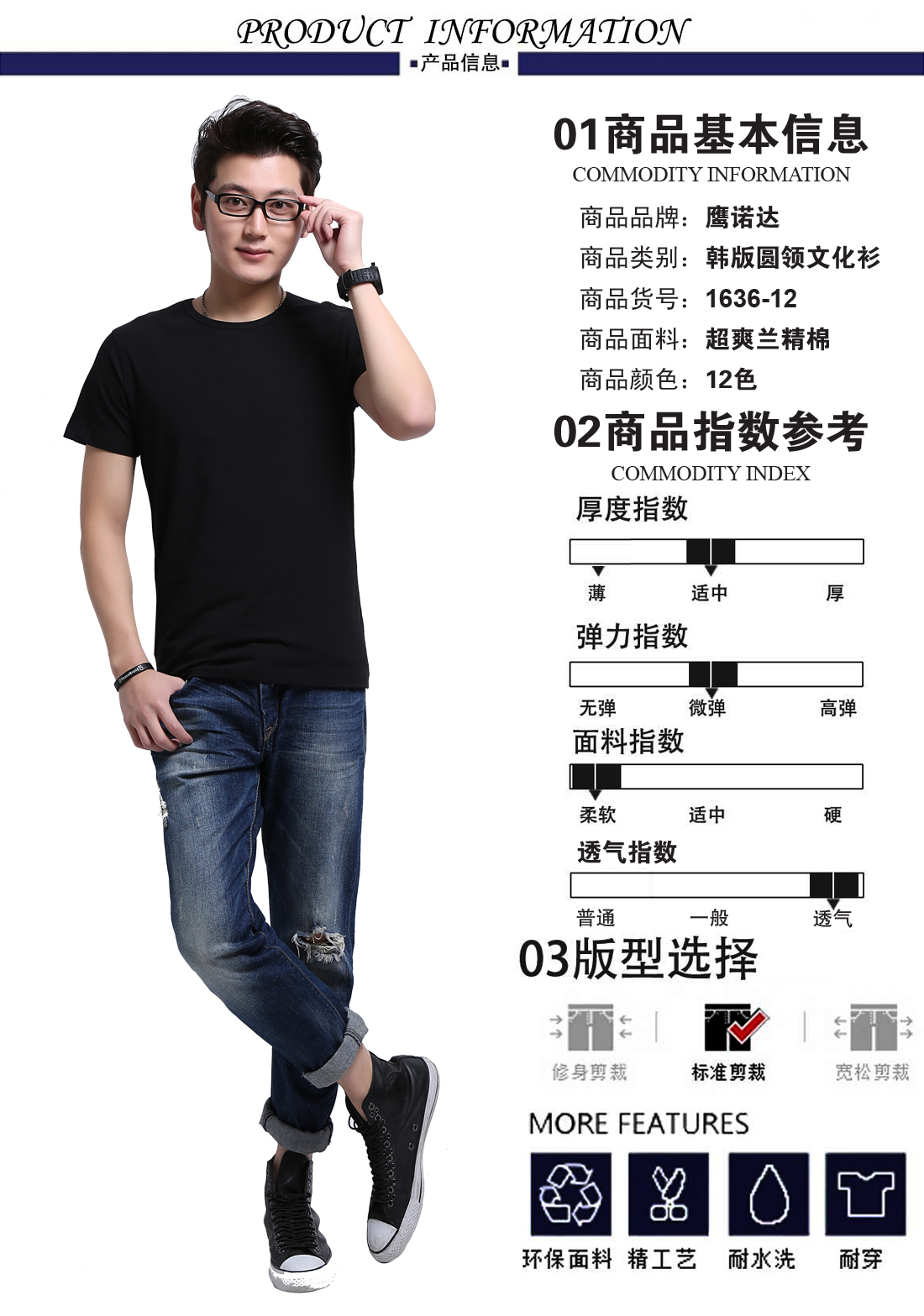 黑色超爽兰精棉文化衫ID1636-12