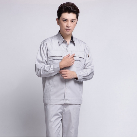 苏州鹰诺服装:浅灰拼中灰全棉秋季工作服AC06-1